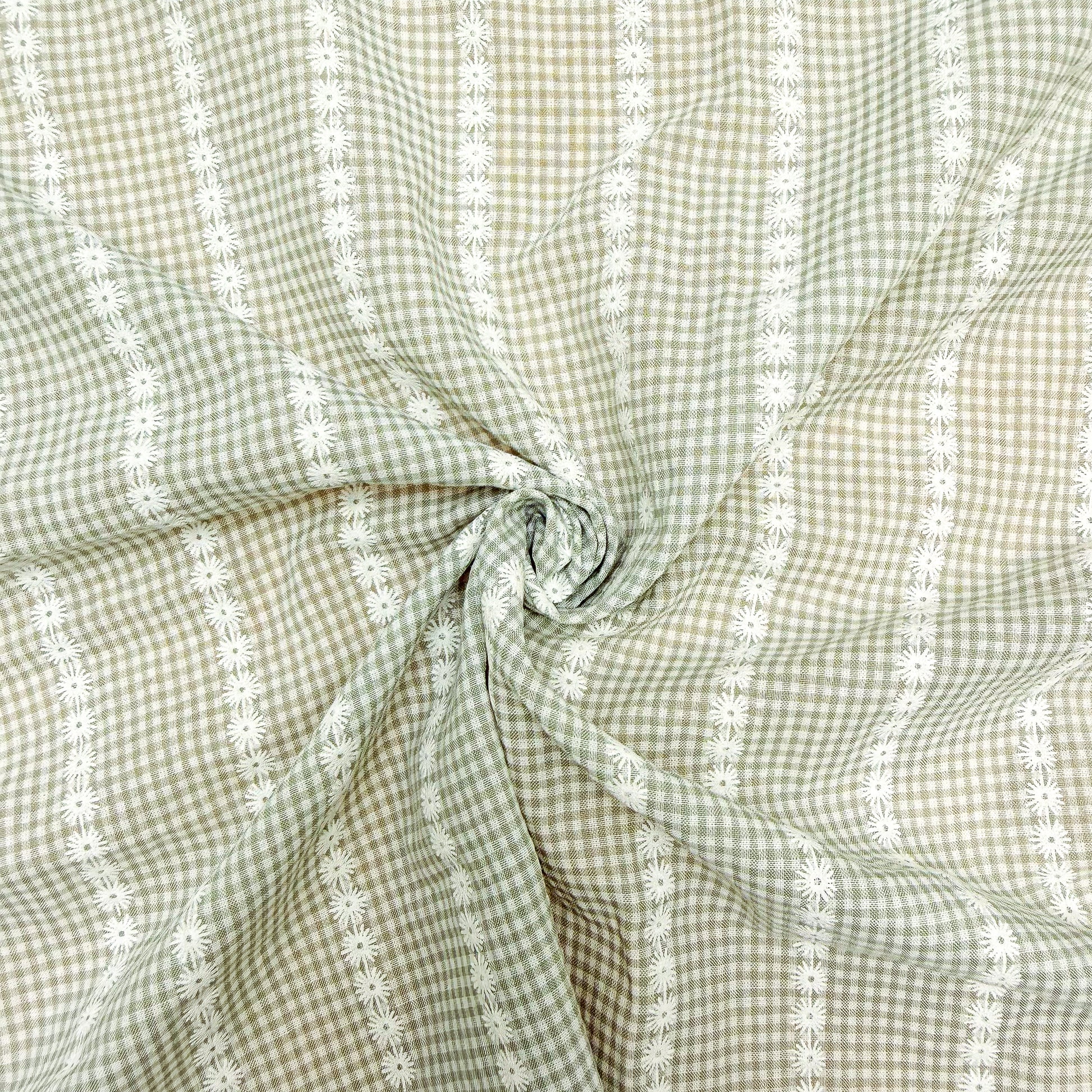 Soft cotton rich dobby featuring embossed floral accents on a gingham base.