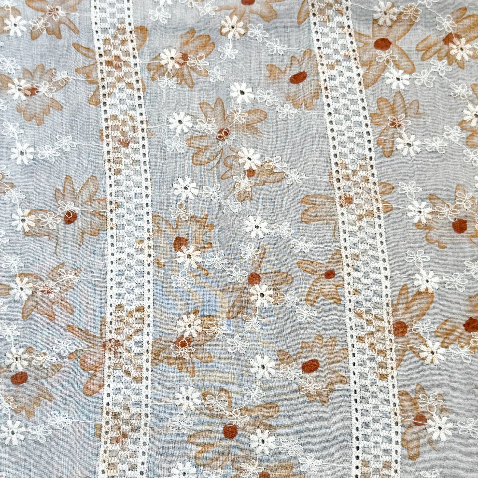 Lightweight and breathable embroidered cotton with a soft floral print and delicate thread-worked daisy details.